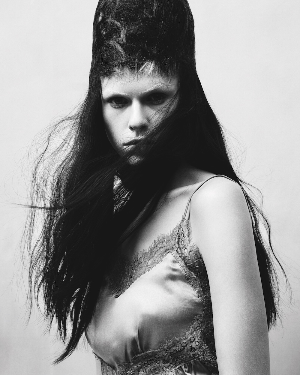 Keen to create a collection that celebrates imperfections, the hair within Harry Andreou’s story feels raw, messy, seen almost as if mid-transformation. It speaks to rough edges, ideas unresolved with each look rebelling against the need for everything to be polished for approval.
